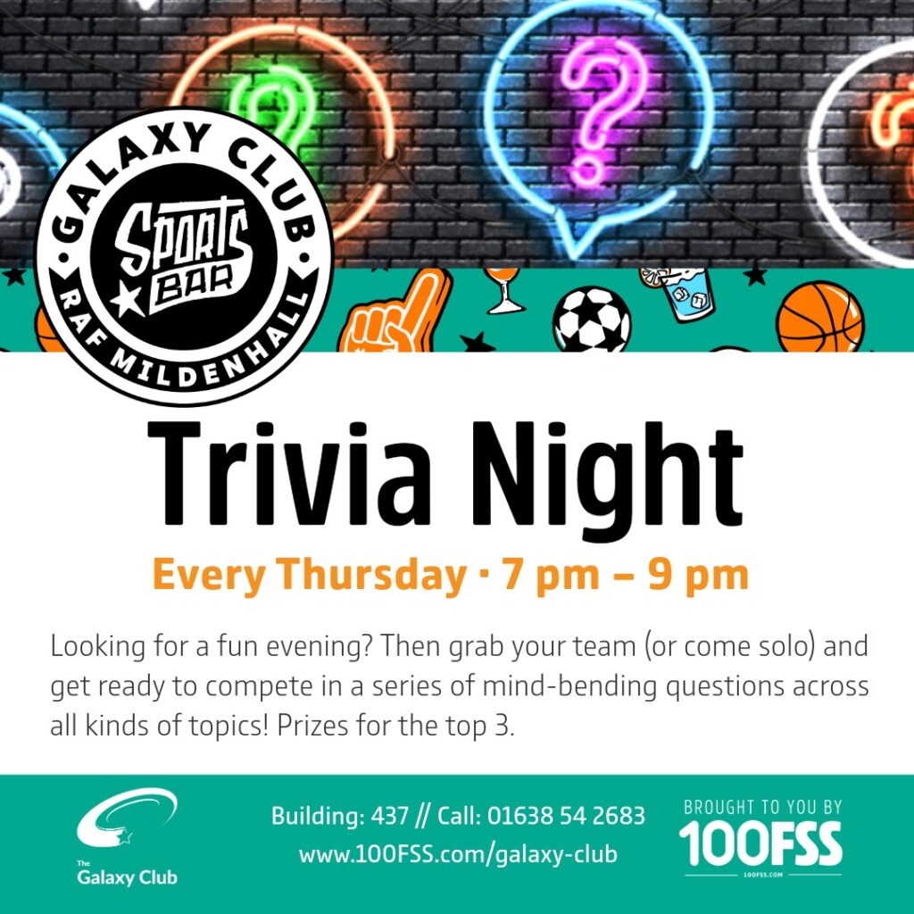 Put your knowledge to the test at Trivia Night at the Galaxy Club! Join us every Thursday for an evening of fun, friendly competition, and brain-teasing questions. Bring your friends, form a team, and see if you have what it takes to claim the bragging rights. Whether youโre a trivia master or just in it for the laughs, everyone is welcome.